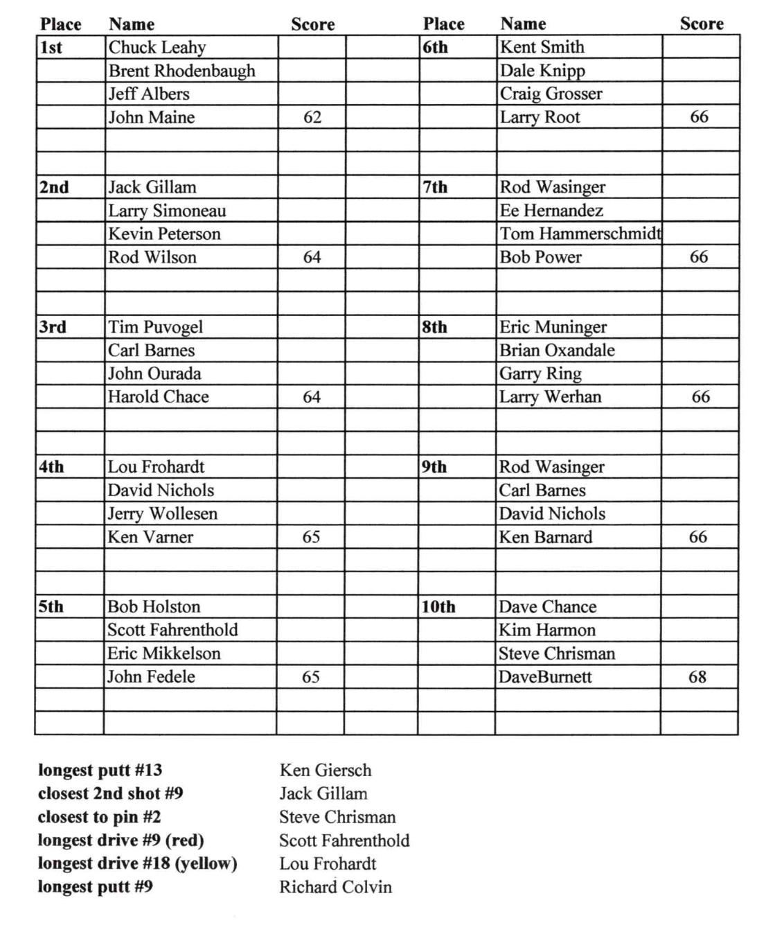 Salina Municipal Golf Course Thursday Morning Seniors Results - July 31, 2025