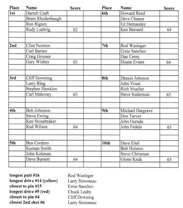 Golf Salina Municipal Golf Course Thursday Morning Seniors Results - November 6 public – 1 min read Salina Municipal Golf Course – par 70 Scramble format – 58 players… Nov 8, 2025 George