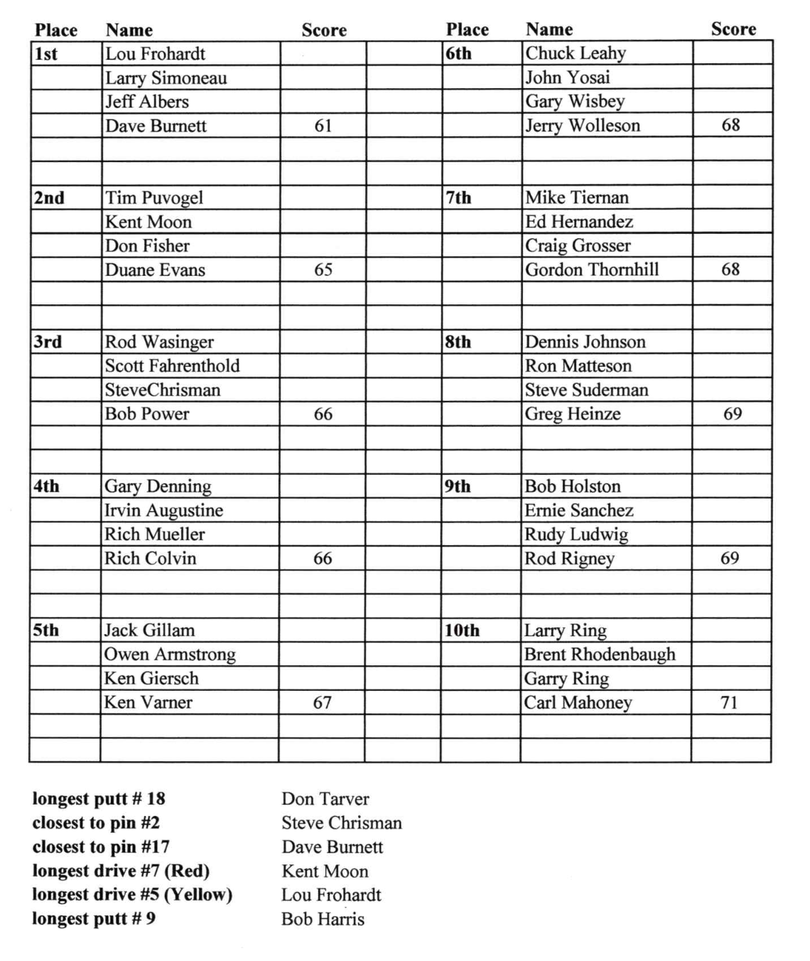 Salina Municipal GolfCourse Thursday Morning Seniors Results - September 11
