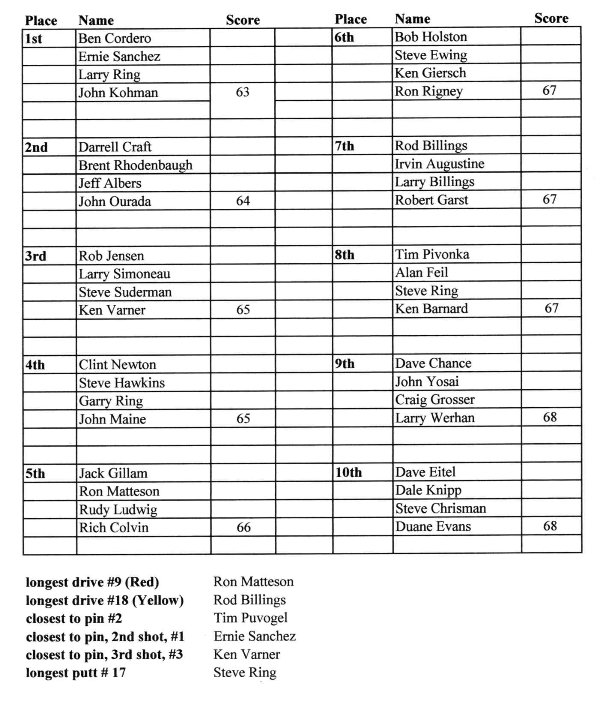 Golf Salina Municipal Golf Course Thursday Morning Seniors Results - October 30 public – 1 min read Salina Municipal Golf Course – par 70 Scramble format – 30 players… Nov 1, 2025 George