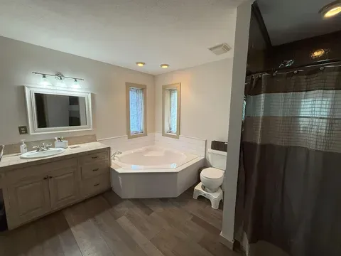 This spacious country property offers 4,545 square feet of living space on approximately 3.16 acres and is listed for $675,000. Built in 2005, the home features four bedrooms and three and a half bathrooms, with an open living and dining layout on the main floor.