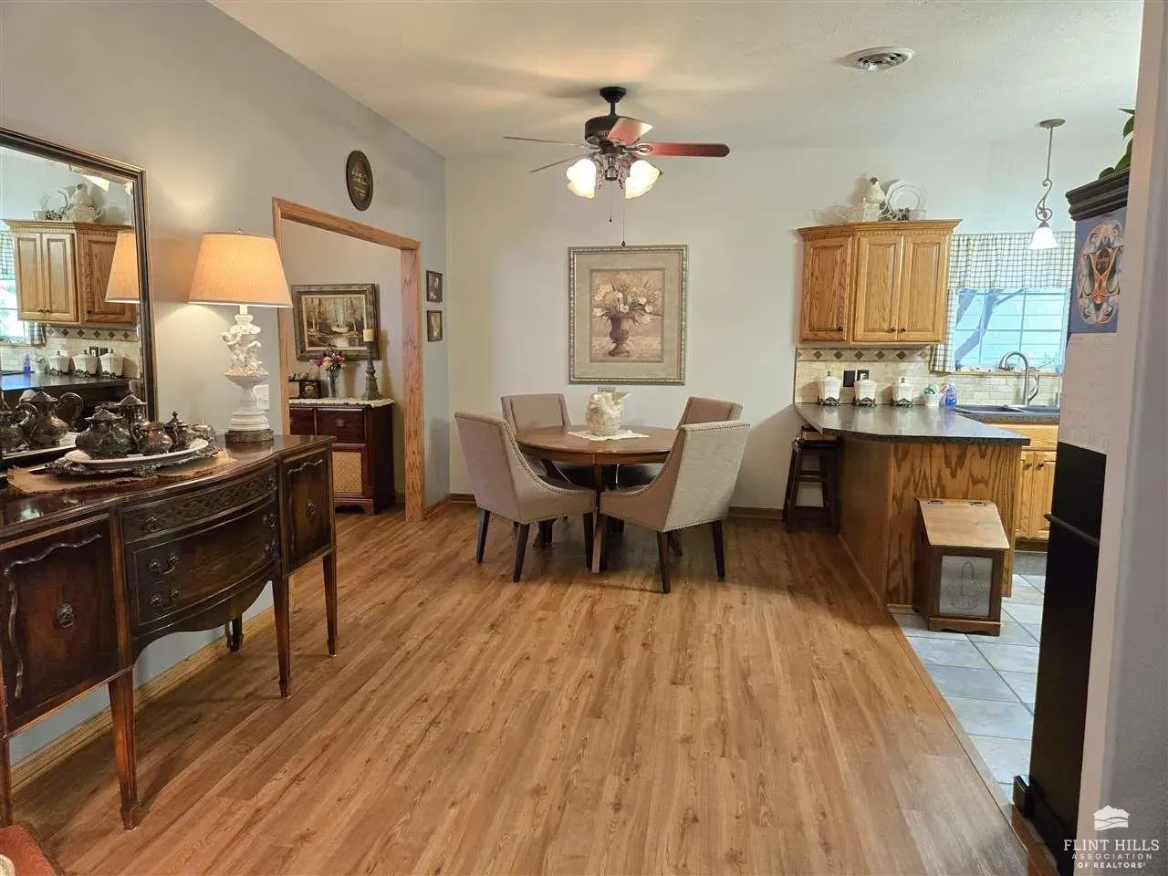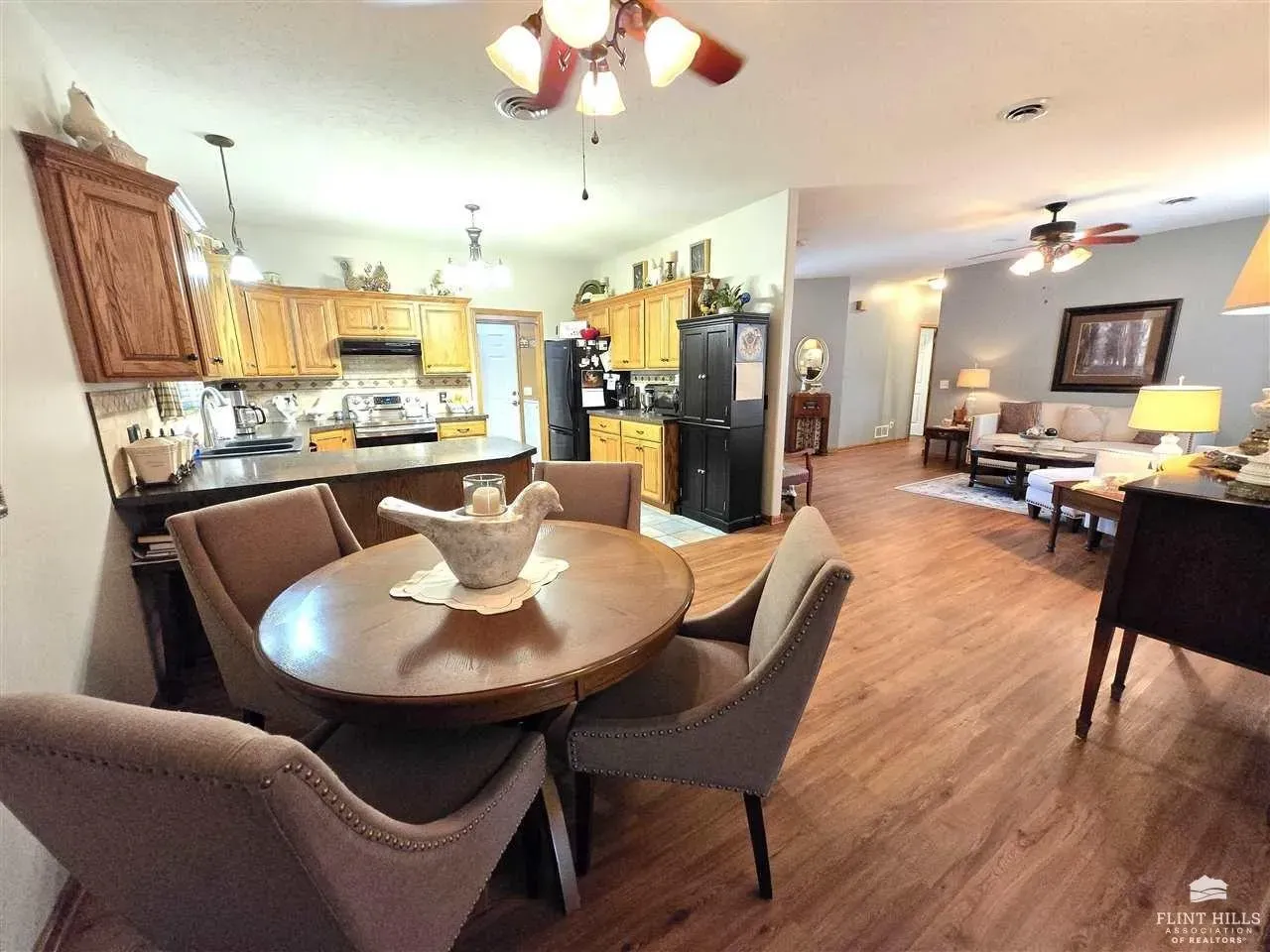 The open floor plan creates a seamless flow between the living room, kitchen, dining area, and family room. Step outside onto the private patio overlooking a beautifully manicured backyard, perfect for entertaining or relaxing evenings.