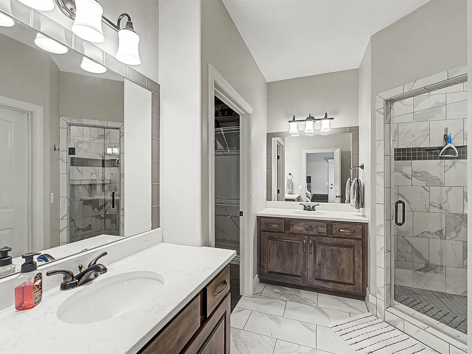 Outside the home, the neighborhood offers a range of amenities, including a catch-and-release pond, park, soccer fields, and wooded walking trails that connect to the Marty Bender trail.