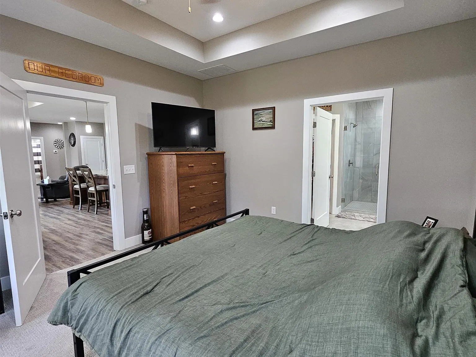 The main bedroom includes an en-suite bathroom with double sinks, a walk-in tiled shower, and walk-in closets, giving the space a more modern, upgraded feel compared to older homes in the area.